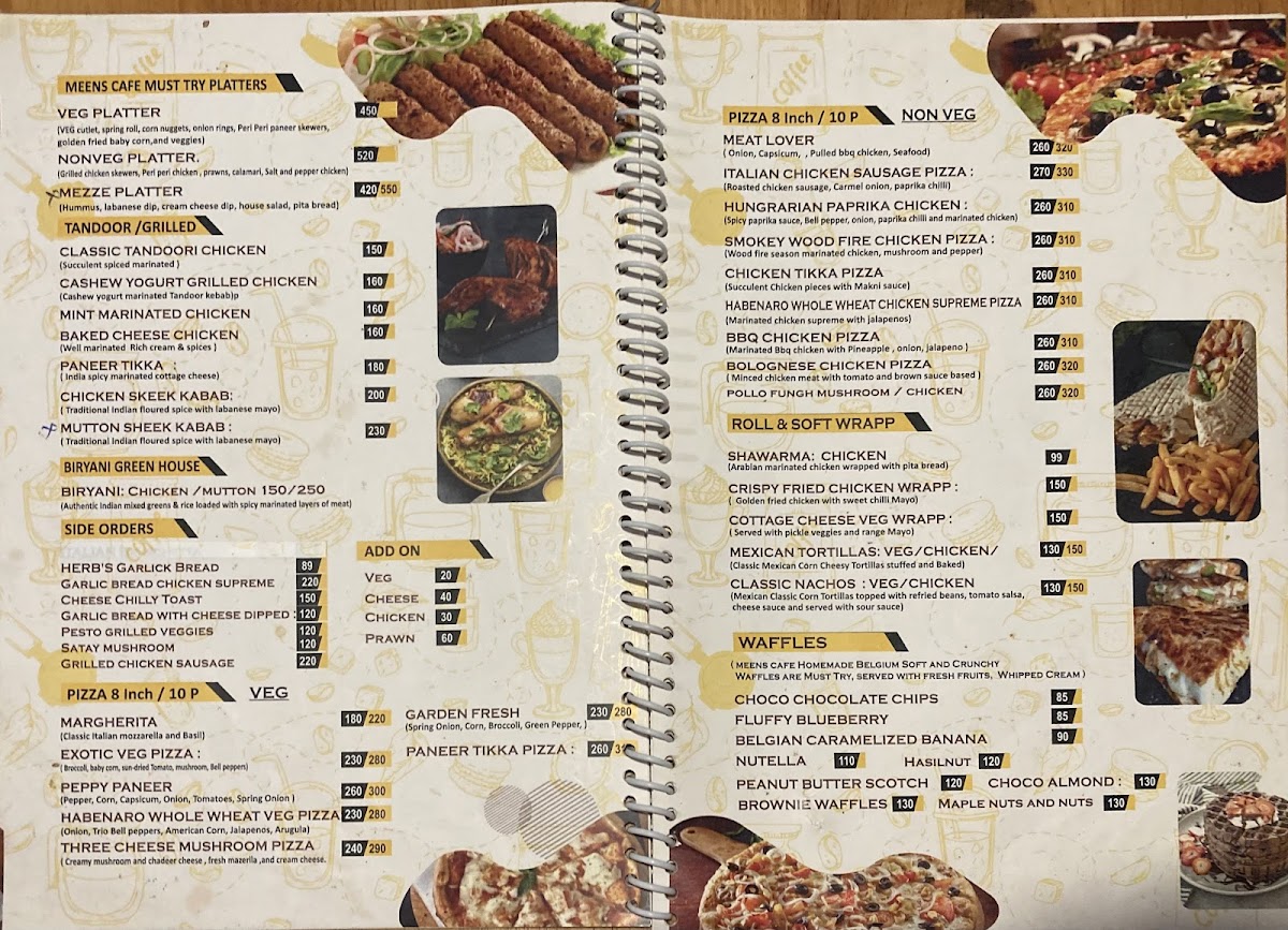 Cuisine Type: Meen@s Cafe & More specializes in a tantalizing fusion of Pan-Asian and Continental fare, making it a haven for foodies. The café’s menu is a refreshing blend of comfort food with an interesting twist, with offerings rich in flavors and delightful presentations.