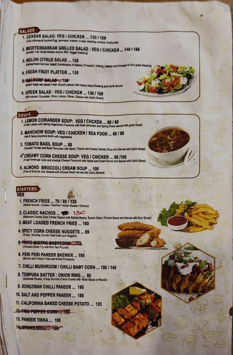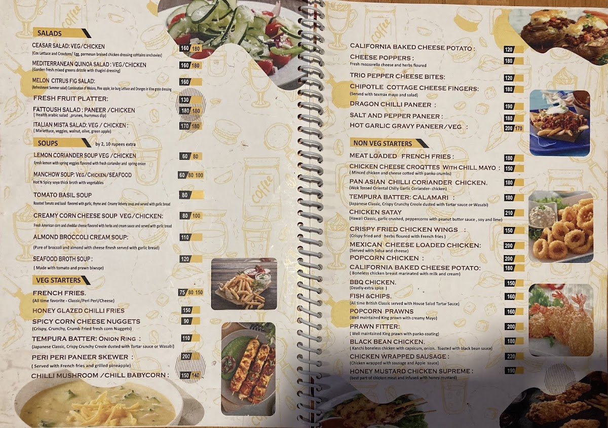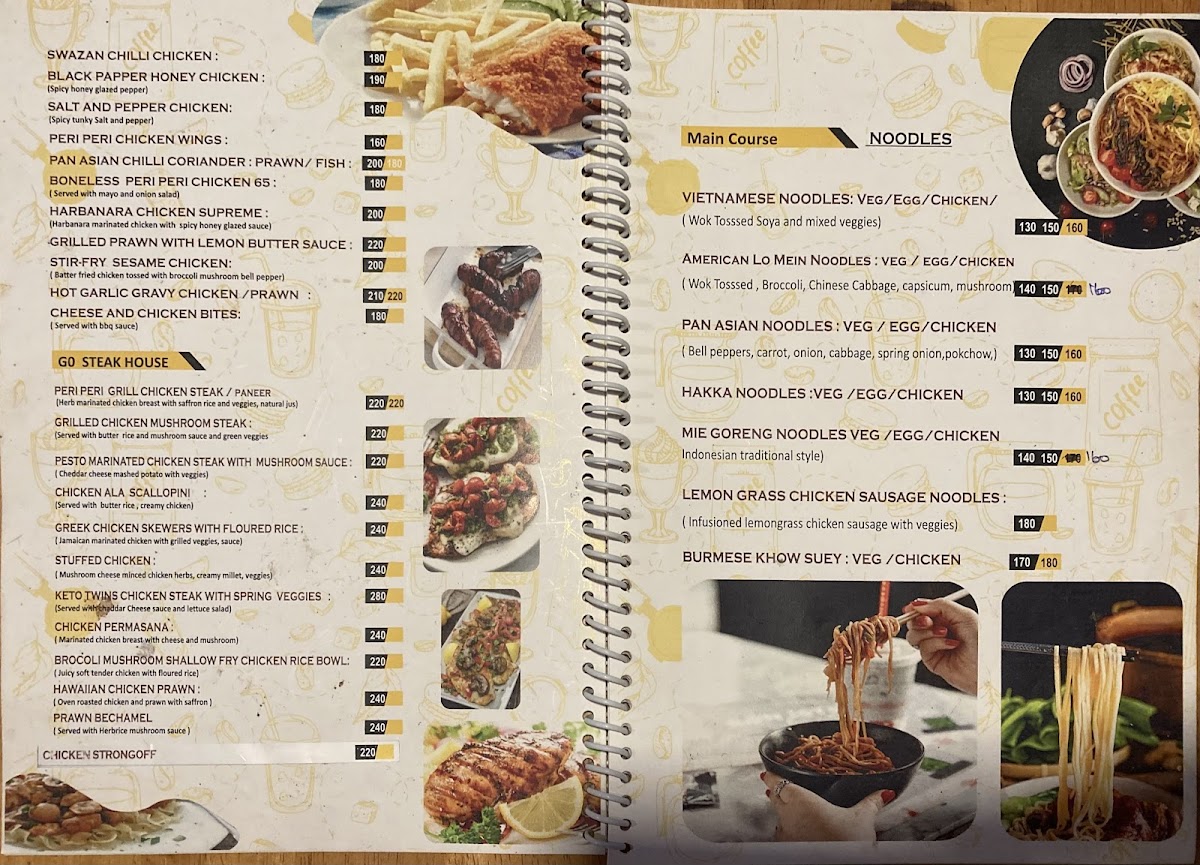 Popular Dishes: As you peek into the menu, be sure to explore their Vietnamese Noodles and Pan Asian Noodles, perfect for those who crave a comforting yet exotic bite. If you're in the mood for warmth, the Thai Chicken Curry (₹220) or Butter Chicken Masala (₹220) promises to deliver a wholesome experience. The range of burgers and sandwiches, including the California Chicken Club Sandwich (₹180) and Tex Max Chicken Burger (₹150), will surely satisfy casual cravings. For a touch of sweetness to end your meal, the exquisite Crème brûlée is a definite must-try, as attested by many satisfied guests.